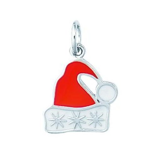 Designed in sterling silver this ENAMEL SANTA HAT charm weighs 1.00g grams and measures 16 x 14 mm. The charm features a jump ring that can be applied to any bracelet or chain. All charms are rhodium plated and are guaranteed not to tarnish. Style-Charm. Metal-Sterling Silver. Finish-Polishe. Approximate length-16mm. Approximate width-14mm.Available at Amazon